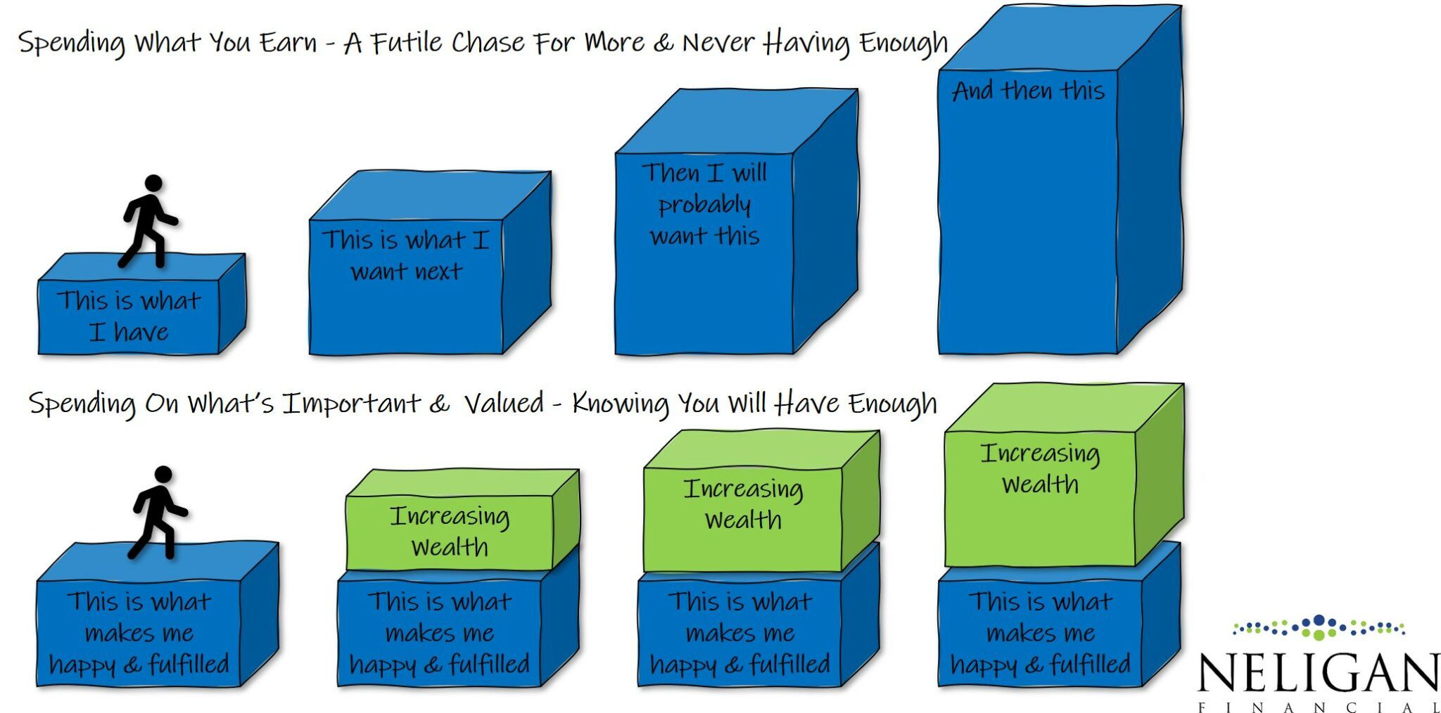 Cap your lifestyle around those finish lines. Regardless of how much you make each year or accumulate in your life, don’t change how you live because you have access to more. It’s a climb that never ends.5