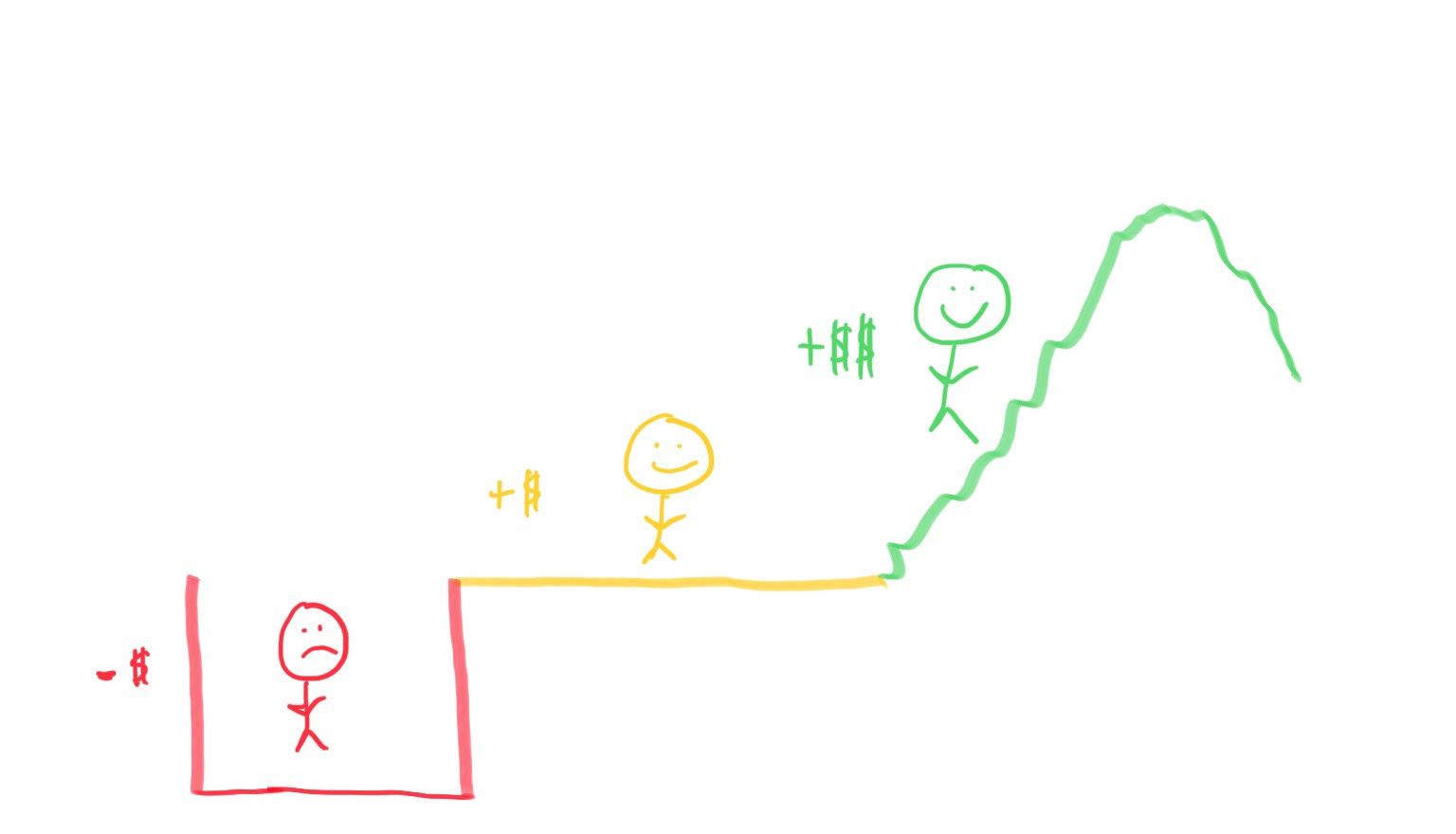 Prereqs aren’t usually fun, but they’re essential. Get on stable financial ground and embrace being a human. If you get these two things down, you’re off to the races to climb the mountain of investing like a boss.